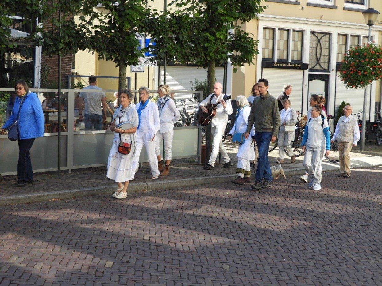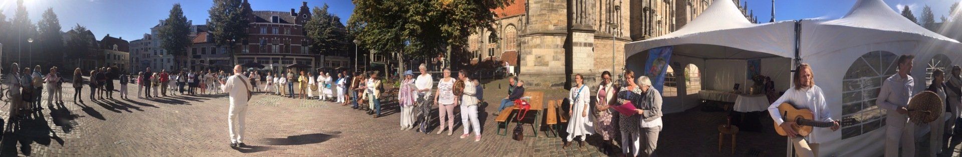 Wat doen we in Deventer eigenlijk voor vrede? Meer dan je zou denken! Er zijn veel organisaties en individuen die zich inzetten voor een leefbare samenleving, met respect, compassie en liefde voor iedereen, zonder onderscheid: meester Geertshuis, Etty Hillesum Centrum, Vrouwen voor Elkaar, Amnesty International Deventer, geloofsgemeenschappen en vele anderen. Zij brengen ieder op hun eigen manier de vrede een stapje dichterbij. Dit hebben we samen gevierd op zaterdag 21 september, de Internationale Dag van de Vrede! Met een Walk of Peace vanuit vier windrichtingen, met een meditatief vredesmoment en een middag vol activiteiten langs de Deventer Vredesroute. Op vijf plaatsen wapperde de Deventer Vredesvlag! Bekijk hieronder het verslag.